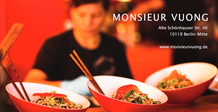 Monsieur Vuong ist ein Familienbetrieb und Wegbereiter der vietnamesischen Garküche in Berlin. Dat Vuong kam als Kind nach Deutschland und vermisste die aromatischen, unkomplizierten Gerichte seiner Heimatstadt Saigon. 1999 eröffnete er ein winziges Indochina Café im historischen Berliner Scheunenviertel. Inzwischen befindet sich das Restaurant in der Alten Schönhauser Straße.
